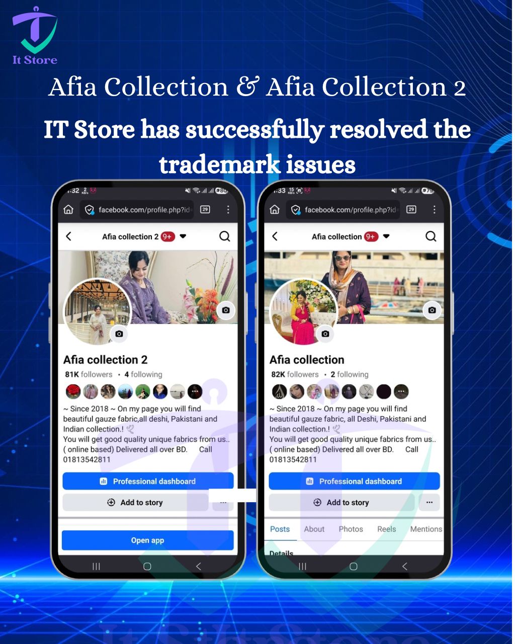 Trademark-related restrictions on Afia collection & Afia collection 2 Pages have been resolved with IT Store’s support.We assist businesses with Page compliance and management solutions.